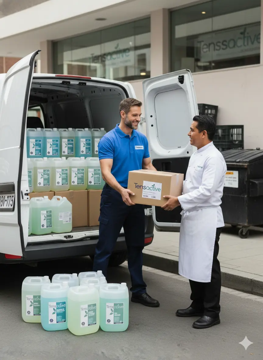Sabemos que quedarte sin insumos detiene tu operación. En Tensactive somos el "Partner Invisible" de restaurantes, escuelas, gimnasios e industrias. Olvídate de coordinar compras de pánico.